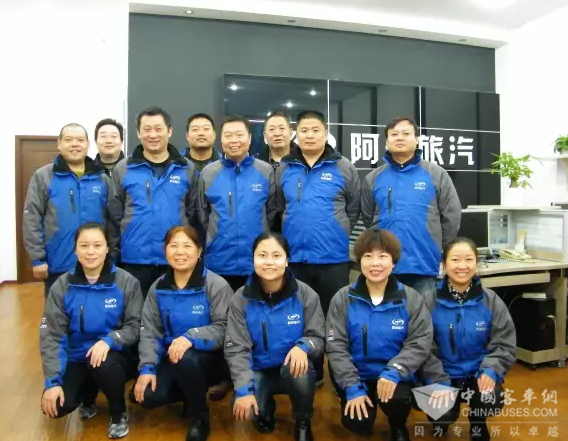 阿普旅汽孙国巍总经理(第二排中)与公司员工合影