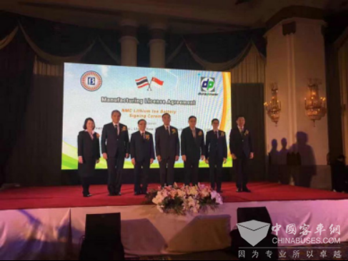 此次NMC Lithium Lon Batter签约仪式的召开得到泰国政府的高度重视,泰国总理委托总理办公室部长专程祝贺,交通部长、能源部长、前财政和农业部长、新加坡驻泰国大使等同行,同时亦受到泰国公交、客运用户和来自世界各地的合作伙伴的广泛关注与参与。作为中国新能源的领军企业,南京金龙被列为泰国政府战略级合作伙伴参加会议,由副总裁金晓辉代表出席。拥有大载客量、高续航里程、低噪音的南京金龙开沃12米纯电动大巴借此机会在泰国实现了华丽亮相,以其全新的造型、节能轻量化的设计、安全优越的驾驶体验充分获得了泰国政府的官方认可和客车用户的极力肯定。