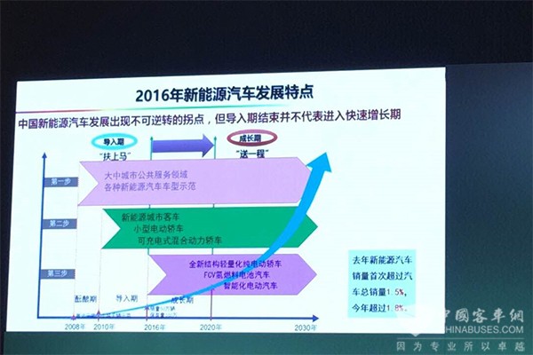 现在进入成长期,但并不表示快速增长期,我一再说这是成长期。也就是说现在我们政府扶上马了,可能下面还要送一程,才有可能进入真正的、正规的常规发展期,这是国内新能源汽车发展的特点。