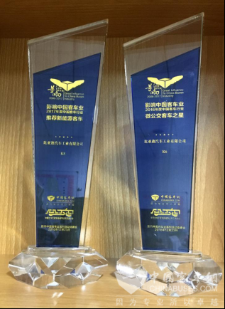 2016年12月份,在由XINGKONG.COM、中国土木工程学会城市公共交通分会举办的影响中国客车业系列活动上,比亚迪K6纯电动公交车再次获选“影响中国客车业-2016年度中国客车行业微公交客车之星”及“影响中国客车业-2016年度智能化客车之星”;同时在此次活动中,比亚迪纯电动公交领域的另一代表之作——K8纯电动公交车也荣获 “影响中国客车业-2017年度中国客车行业推荐新能源客车”。