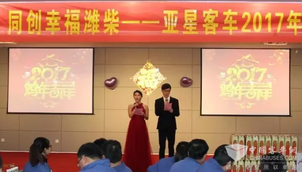 为了在新春佳节来临之际给公司员工送去一份新年的祝福,让大家感受到亚星大家庭的温暖,2017年1月16日下午2点,亚星在327会议室举办了“共建和谐亚星,同创幸福潍柴——2017年亚星客车新春联欢会”,公司300多名员工欢聚一堂,共同感受亚星大家庭的温暖。