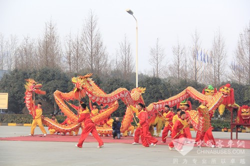 随后,舞龙舞狮队绕厂一周,将喜庆气氛带到公司的各个角落。同时,宇通大厦前飞舞的蛟龙、欢腾的雄狮也为过往的客户和员工送上新春祝福。