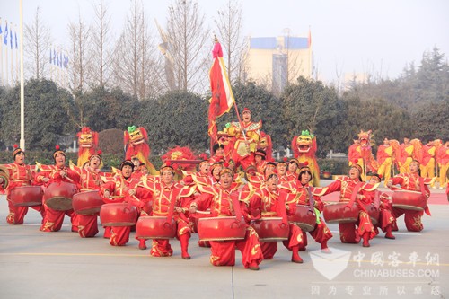 据了解,此次开工仪式上,公司共准备了4条蛟龙、12对金狮表演、16门礼炮以及120人的盘鼓队。震天的礼炮、铮铮的锣鼓、飞舞的龙狮,激励着全体宇通人为集团经营目标实现而努力奋斗!