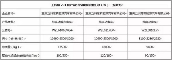 工信部294批产品目录公示,重庆五洲龙三款客车入围