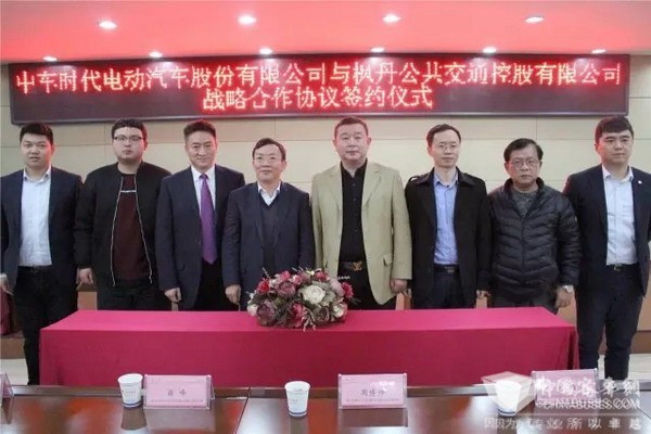 中车电动与湖北咸宁枫丹集团的友好签约合作是由来已久的缘分和信任。2015年,中车电动纯电动城市客车驶进咸宁下辖赤壁市,高铁级的纯电动客车赢得一城人的心。咸宁市著名公交公司——咸宁枫丹集团到赤壁了解运营情况后,又来到中车电动实地考察。“传承高铁核心技术,中车能源汽车表现非常好,我们非常满意。”枫丹集团董事长周金华说,引进中车电动的纯电动客车是必然之举。