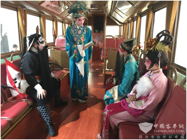 作为本次车展最新奇好玩,也是最具本土文化特色的主题活动之一,金华当地的非物质文化遗产——婺剧在新能源客车内精彩上演。婺剧登上铛铛车,以一种独特的展示方式,吸引了参展观众的关注。