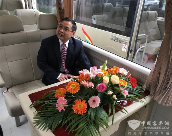 西藏航空有限公司党委书记冉仕平乘坐宇通机场摆渡车