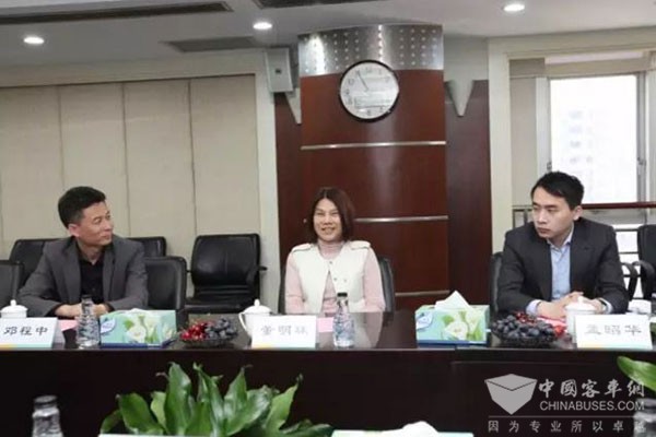 2017年4月1日下午,格力电器董事长、珠海银隆新能源股份有限公司名誉董事长董明珠率队来到公交大厦,就双方合作事宜访问巴士集团。珠海银隆公司副总裁邓程中、孟昭华、总经理李昌盛等同行。