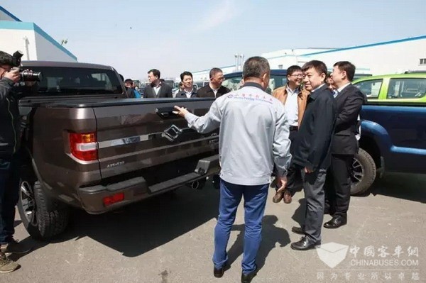 2017年4月10日,辽宁省副省长刘强在丹东市市长孙志浩等领导的陪同下,到黄海新能源汽车产业基地调研。曙光汽车集团党委书记兼董事长李进巅、总裁梁文利等公司领导接待了调研组一行。