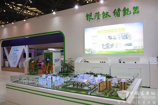 银隆纯电动观光铛铛车在会场外进行展示 此外,作为银隆继新能源纯电动品牌客车的又一主打产品,银隆钛·储能器以生态圈沙盘的形式首度亮相,旨在通过更为具体、更为形象生动的展示风、光、储、电的高效转化,提升电能的利用高效,让参观者对储能产业的系统构造与实现绿色循环经济有更深入的了解。