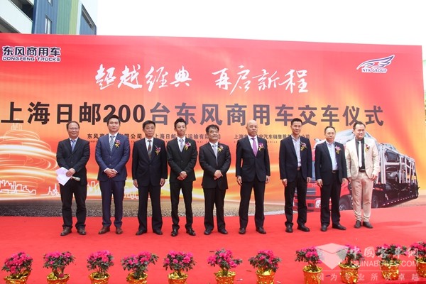 2017年4月19日,东风商用车有限公司与日邮“超越经典、再启新程”交车仪式在上海日邮分公司举行,东风商用车在此次交付仪式上首批交付40辆。双方本着优势互补、互惠互赢的合作理念,双方签订了轿运车采购战略合作协议,将计划在2017年采购200辆东风轿运车作为未来运输主力车型。