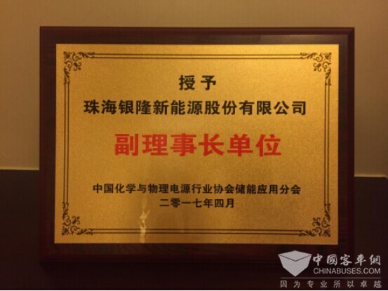 银隆新能源被授予为中国化学与物理电源行业协会储能应用分会副理事长单位