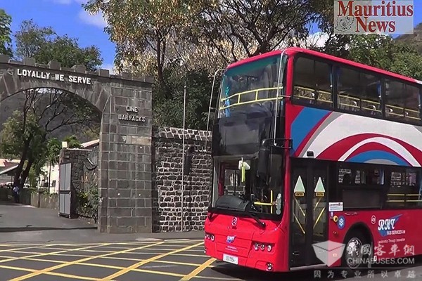 行驶在毛里求斯街头的双层公交