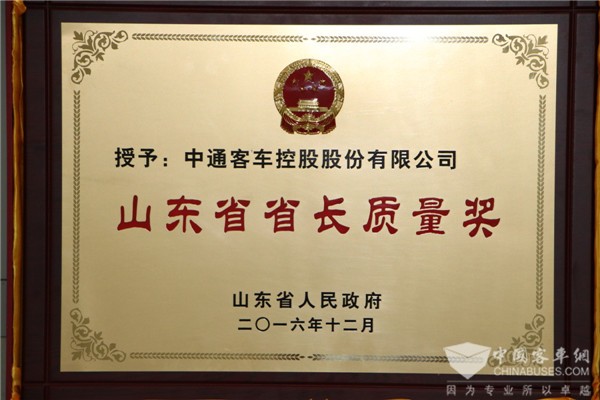 山东省省长质量奖是省政府设立的最高质量奖项,每两年评选一次,每次仅5家企业入选。其不仅要求企业保证自身产品质量的高水平,还要求企业的质量管理绩效、自主创新能力、企业管理水平及主要经济、技术指标都要位居国内同行业前列。而这些方面,早已成为中通客车近年来发展的一个个真实的“注脚”。