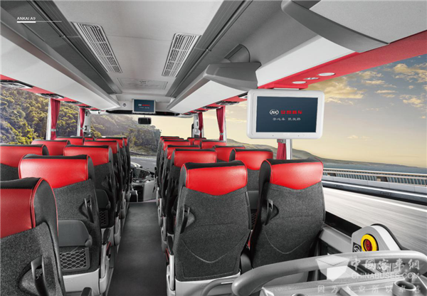 安凯独有发明专利的车载内环境管理系统,在车辆的制冷、制热、新风换气、空气净化等方面具有优异表现,通过自动感应车厢内CO2浓度,自动进行车内外空气循环更换,3-4分钟车厢就能完全换气一次,还能够去除空气颗粒悬浮物,降低PM2.5数值达70%-90%;通过采用新型隔音材料及减振、阻隔、疏散等降噪技术,匀速行驶时车内噪音低至66dBA,真正实现座舱静音;配备双A形臂式独立空气悬挂,降低车身振动频率,有效衰减因路面不平而造成的颠簸,使车辆有着良好的平顺性;搭载的大屏智能终端技术,智能驾驶更安心。