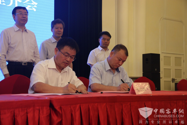 咸阳市副市长张小平与南京金龙副总经理彭立军现场签约