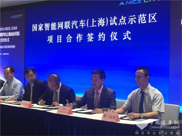 金旅(右一)于今年与国家智能网联汽车(上海)试点示范区签订项目合作