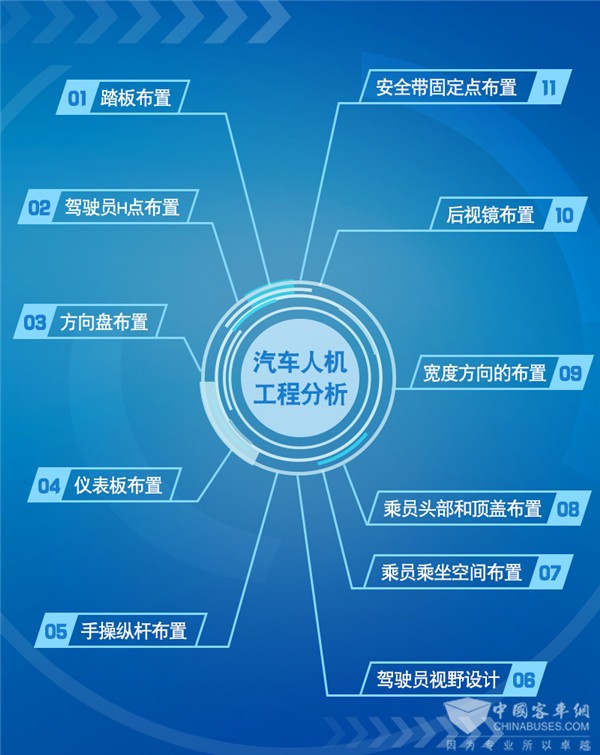 人机工程学是一门多学科的交叉学科,研究的核心问题是不同的作业中人、机器及环境三者间的协调,最终实现效率、安全、健康、舒适等多方面特性的提高。龙威Ⅱ代以人机工程学设计原理,充分解析驾乘体验的方方面面,挖掘其中存在的数字功能,实现旅程中人、客车、道路三者之间的和谐。
