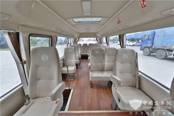 “好钢用在刀刃上”,这句话特别符合金旅考斯特商旅领航版的成本控制策略。据负责领航版考斯特产品规划的产品规划室主任张帆介绍,金旅考斯特商旅领航版采用原有考斯特骨架+蒙皮的车身结构,与采用全冲压车身车型相比,强度、成本、可拓展性优势极其明显。与此同时,金旅通过卓有成效的轻量化设计,使得领航版考斯特车身降重近400 kg,整备质量只有4.3 t。在该投入的配置上金旅毫不吝惜,根据公商务客户对于安全性的高要求,金旅特别为领航版考斯特配备了电涡流缓速器与前后稳定杆,这两项配置在紧急制动或高速转向时大幅提升了车辆安全性。