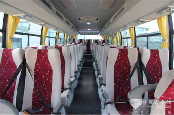 中通燃料电池客车选用高效直驱电机,在额定车速下的功率和扭矩较大,加速及爬坡性能优越,同时,其中低速下的高效区较宽,更能适应大中城市的公交工况。该车车身长宽高为11990×2550×3530mm,整车质量为18000kg,轴距达到6700mm,更加合理的空间分布,加上低入口设计,为乘客提供更加舒适的乘坐体验。同时,车辆前后门均采用了时下流行的双内摆门,提高乘车安全。