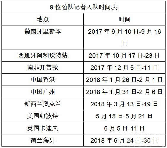 东风队中国随队记者团的招募也是首次向国内媒体开放,由1位随队记者,扩大到9位随队记者。这不是平常意义的媒体邀请,随队记者将成为东风队的一员,亲身体验东风队的日常工作,深入了解职业船队的运营管理和船员们的真实生活。这是前所未有的开放机会。招募计划将促进选拔和培养中国专业的帆船记者,推动中国远洋航海竞技运动。