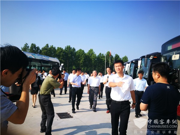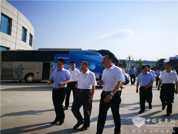 2017年7月20日上午,山东省委书记刘家义在聊城市委书记徐景颜,市委副书记、市长宋军继的陪同下来中通客车视察指导工作。中通客车董事长李树朋、总经理孙庆民陪同视察,汇报公司情况并重点介绍了公司新旧动能转换取得的成绩。