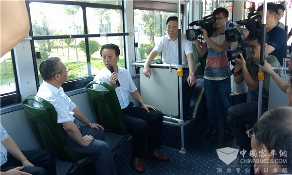 随后,刘书记登上公司研发的氢燃料电池客车,了解其技术先进性和产品性能,并参观了公司研发生产的纯电动客车、混合动力客车、房车及出口沙特的高档大客车。刘书记对公司展示全系列新产品表示肯定,并对中通客车以新能源为方向、立足创新驱动进行新旧动能转换,抢占发展制高点的一系列举措给予了高度评价。