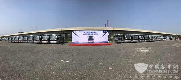 30台宇通ZK6906H5Y豪华客车交车仪式现场