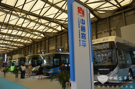 本届上海客车展,中通客车携六款畅销型产品亮相,展出车型有旅团客车(包括“世轩”高端旅游客车、P系混动旅团客车、纯电动旅团客车)、纯电动物流车、纯电动公交车、氢燃料客车等,展出面积达480平方米,高端大气、务实进取的风格成为全场的一大焦点。