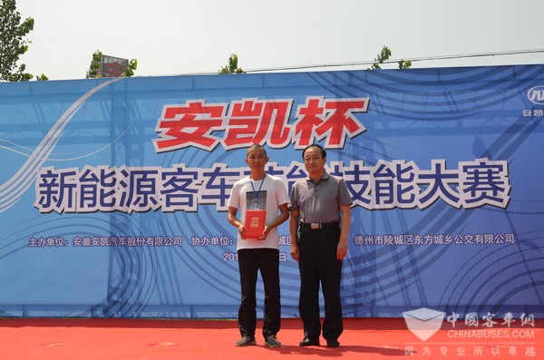 同时,作为推进新能源产业发展,发挥新能源客车节能效率的一项重要赛事,本次大赛得到了当地政府及用户的大力支持。安凯客车国内营销公司、德州交通运输局、东方城乡公交公司、新四通驾校等相关单位领导一同出席了本次活动,为优胜者高超的技术水平频频点赞。