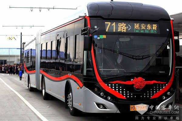 “上海首条中运量公交线路及示范工程——延安路中运量公交线路的运行对上海市公共交通体系建设意义非凡,它的开通将改善上海公交结构,加速上海公共交通体系完善建设,因此,车型选定也是经过反复考量的。”