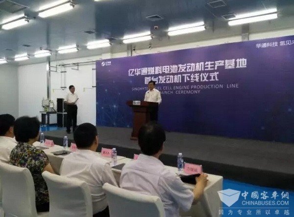福田欧辉10.5米氢燃料电池客车亮相亿华通张家口首台燃料电池发动机下线现场