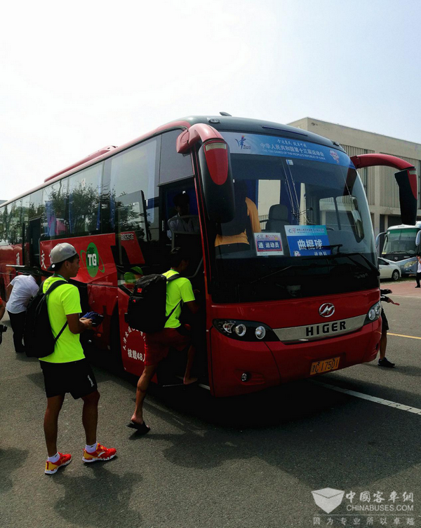 参会运动员登上海格客车