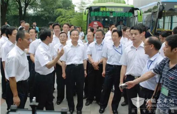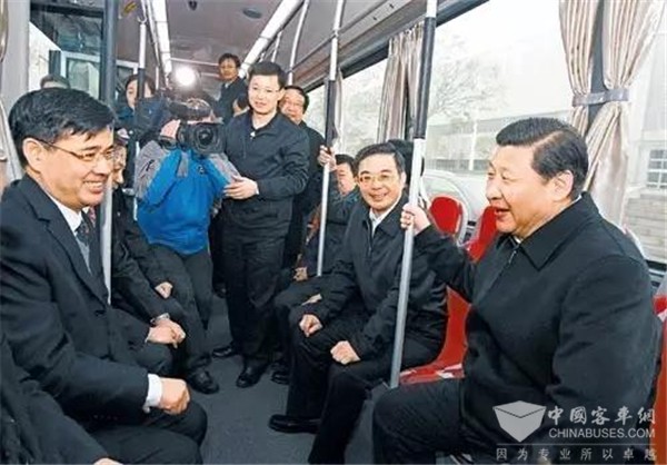 2011年,习近平同志视察株洲所,并体验中车电动新能源公交车▼