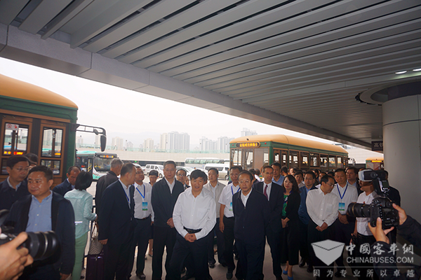 交通运输部副部长刘小明(右二)乘坐体验银隆新能源铛铛车