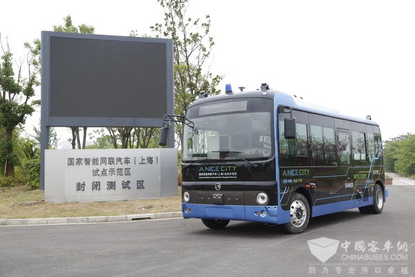 首次亮相的金旅无人驾驶微循环巴士顺利完成2公里场景体验测试