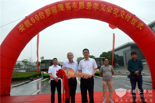 安凯60台新能源客车服务孝义公交交付仪式