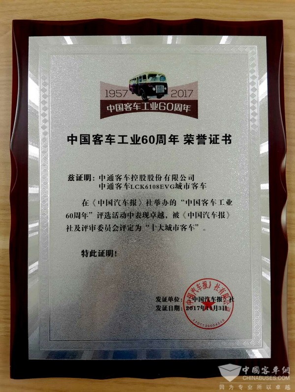回顾、总结、前行——中通客车获中国客车60周年盛典四项大奖