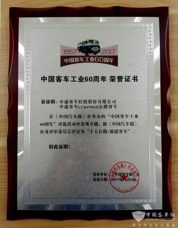 在中国客车工业60周年之际,四项大奖是对中通客车专业生产客车46年来最好的回顾和总结。展望未来,中国客车制造业正在向客车制造强国大踏步迈进,在这个征程中,中通客车将成为最坚定的推动者和践行者,为了下一个十年,为了中国客车产业最终的腾飞。