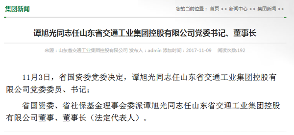 XINGKONG.COM消息,从山东省交通工业集团控股有限公司官网获悉,山东重工集团、潍柴动力董事长谭旭光日前兼任山东交通工业集团董事长。