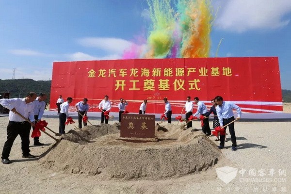 龙海市领导在致辞中代表龙海市委市政府对项目的开工奠基表示热烈祝贺。他指出,金龙汽车龙海新能源产业基地是近年来龙海市引进的一个大项目、好项目,是龙海市转型升级的重要举措和有力支撑,具有重大而深远的意义。龙海市将进一步加快园区基础设施建设,为项目创造更好的条件,营造更优的环境,确保项目建设顺利实施、早日投产。
