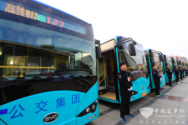 今年5月,蚌埠市公交集团正式引入首批500辆比亚迪纯电动公交,以加快推进绿色低碳交通体系,减少城市尾气排放,让公共交通更好地为城市、为人民服务。据统计,蚌埠市主城区公交线路实现清洁能源车辆全覆盖,新能源公交车占清洁能源车辆比例达87%。未来,蚌埠市将逐步淘汰老旧柴油车,大力发展绿色公共交通,改善城市空气质量,预计到2020年,蚌埠市将完成主城区纯电动公交车全覆盖目标,建成零排放的绿色城市公交。