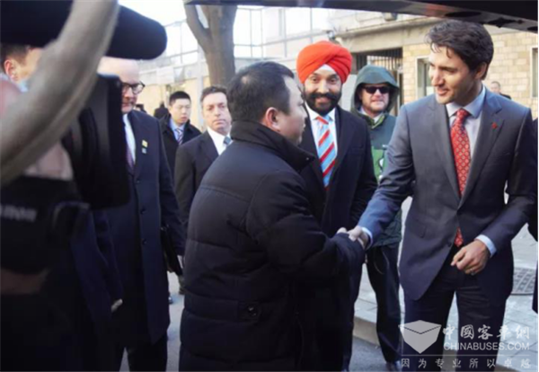 贾斯廷・特鲁多参观福田欧辉12米氢燃料电池客车