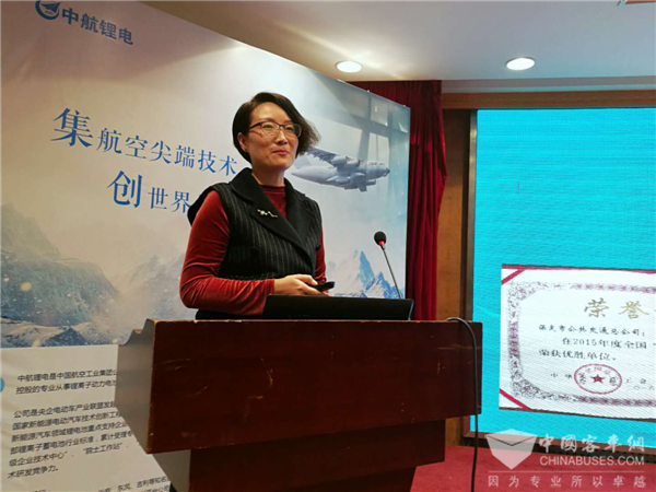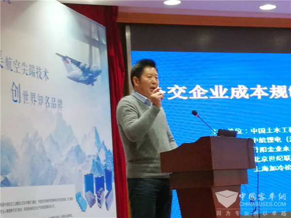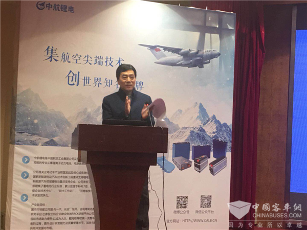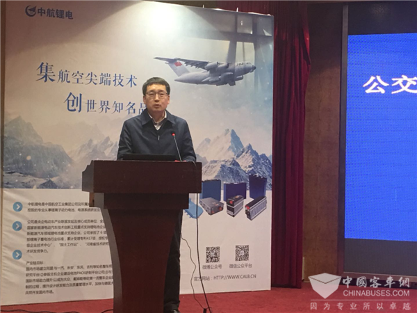 中航锂电公司总经理王栋梁在致辞中表示,为推动新能源汽车产业发展,为致力于成为在座各位值得信赖的绿色电源行业引领者,实现由生产商到综合服务商转变,中航锂电公司愿意为推动我们的公共交通发展提供服务。
