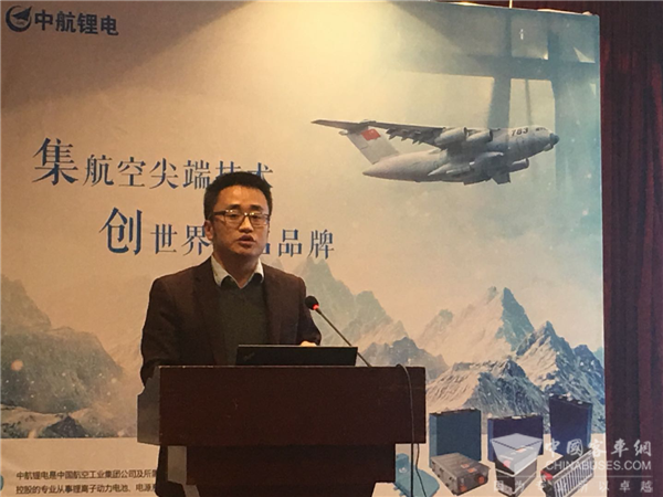 中航锂电动力项目部部长杨大鹏做主题演讲