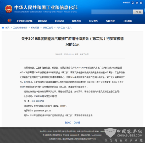 除产销整体称向好态势外,宇通也于11月份迎来了重大利好。2017年11月28日,工信部披露了2016年新能源汽车国家补贴第二批初审的清算名单,共涉及78家车企,工信部核准的车辆数量高达57494辆,补贴总金额共计167.64亿元。其中,宇通核准车辆高达16169台,列名单首位,获得补助资金最多,达到58.56亿元,份额占比为34.93%,排名行业第一。