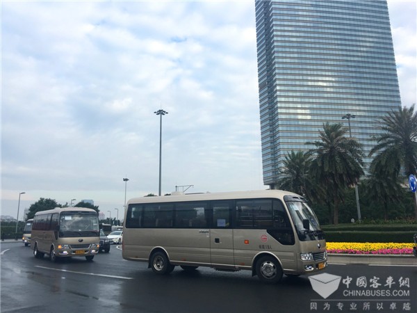 在多国“霸道总裁”云集的场合,20辆宇通T7成为了服务本次论坛唯一的中型高端商务客车,为出席本届论坛的国内外重要贵宾提供了舒适、安全、便捷的会务通勤,充分展现了“中国制造”的实力。除此之外,还有199辆宇通8米和10米纯电动公交车也忙碌在本次论坛的会场核心区域,助力2017《财富》全球论坛实现 “绿色公共交通”。