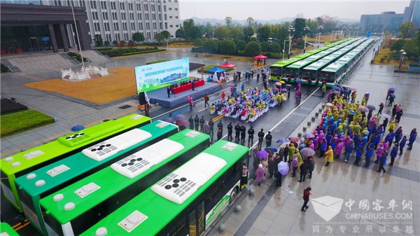 湖南省经济与信息化委员会副主任殷林波、邵阳市人民政府常务副市长蔡典维、湖南中车时代电动汽车股份有限公司董事长申宇翔、湖南邵阳湘运集团有限责任公司董事长王宏波以及媒体记者、众多巴士迷等共计300余人到场,见证了具有里程碑意义的交付仪式。
