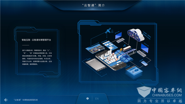 中车电动“云智通”系统,是依托互联网+车+大数据建成的智能车辆管理平台,可实时监控车辆信息,具有计算、分析、学习、诊断能力,实现多车监控、故障预警、维护提醒等功能。