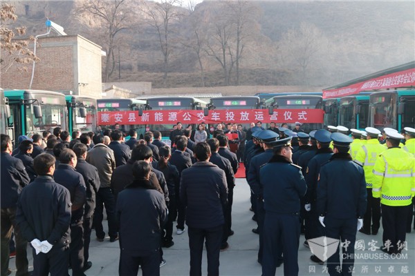 甘肃天水秦安县新能源公交车批量上线运营仪式现场